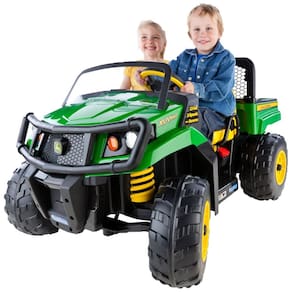 Trailer de aventura John Deere O trailer de aventura da John Deere é o complemento perfeito para o pequeno que leva a sério o seu tempo de jogo Eles vão adorar poder prender o Adventure Trailer ao seu John Deere Gator XUV usando o pino de engate de trava incluído. Com o trailer de aventura da John Deere, carregar e desembarcar nunca foi tão divertido Destaques Rodas resistentes e duráveis Capacidade de transporte extra grande Travando o pino de engate Capacidade de peso de 29 kg 2 velocidades 3 km, h e 8 km, h mais ré bloqueio de 8 km, h para iniciantes Pedal do acelerador com freios automáticos Caçamba extra grande com porta traseira Assento ajustável para crianças em crescimento Marca: Não Informado