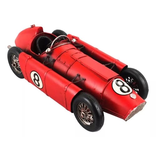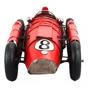 Enfeite decorativo em forma de um carro de corrida vermelho com 8 x 33 x 13 cm de dimensão, detalhes e cores muito realista. Material: metal; Atenção: este produto tem apenas função decorativa, não é um brinquedo e nem um carro de verdade!