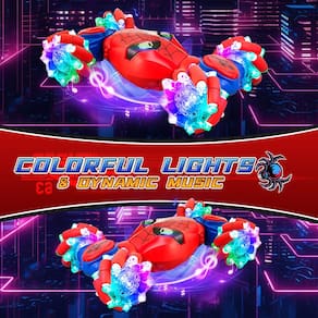 1 - Carro de controle remoto Cool Stunt ?: O carro de acrobacias de controle remoto 4WD recentemente atualizado pode flutuar em todas as direções, girar 360°, dirigir em ambos os lados, dirigir automaticamente e alternar livremente entre os modos estrada e off-road. O carro de acrobacias de controle remoto está equipado com luzes coloridas e música legal, o que deixará as crianças animadas. - ?Vários métodos de controle remoto?: O carro de acrobacias está equipado com um controle remoto manual e um controlador de sensor de gravidade por gestos, redefinindo a nova maneira de reproduzir o carro de controle remoto. A operação é muito nova e simples, e crianças de 6 a 12 anos e adultos podem dominar rapidamente as habilidades do carro controlado manualmente. - Condução em todo o terreno: equipado com 4 motores potentes e pneus duráveis anticolisão, o design de junta biônica flexível permite que o carro de controle remoto controlado manualmente conquiste vários terrenos, como grama, deserto, pedras, escadas, estradas acidentadas, etc. É durável e inquebrável nos modos rodoviário e off-road, o que satisfaz muito a exploração e o espírito aventureiro de meninos e meninas. - ?Diversão multijogador de longo prazo?: O carro com sensor de gestos está equipado com 2 baterias recarregáveis para 80 minutos de jogo. Carregamento rápido e conveniente via USB. O carro de controle remoto adota tecnologia anti-interferência de 2,4 GHz e suporta vários carros de controle remoto para correr juntos. Aproveite a diversão de correr com seus amigos e familiares!