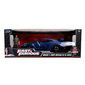Velozes e Furiosos 1:18 Nissan GT-R R35 e boneco Brian de 7,6 cm, brinquedos para crianças e adultos - Autenticamente licenciado - Faróis funcionais, lanternas traseiras e brilho - Corpo fundido - Estilo externo diretamente do filme
