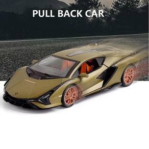 CARROS DE BRINQUEDO - Abrindo portas e compartimento do motor, o modelo de carro tem peças móveis. As portas abrem e fecham, luzes e capô se abrem para ver o motor - Material: corpo de metal com peças de plástico, pneus de borracha, acabamento interno e externo detalhado - Função: modelo de carro de puxar para trás, som e luz do motor. Pressione as duas rodas do carro dianteiro para acionar o som e as luzes do motor e abra a porta para acionar as luzes dianteiras e traseiras. Coloque o carro no chão, segure o corpo do carro e puxe-o para trás, o modelo de carro irá avançar - Ótimo presente e decoração: muito resistente, acabamento fino, bom carro de brinquedo, não grande, nem pequeno, presente de aniversário e presentes de Natal para meninos de 6 a 20 anos de idade - TAMANHO: Modelo de carro Lamborghini Sian em escala 1/24 com base de exibição, tamanho do produto: 16 x 6,9 x 4 cm