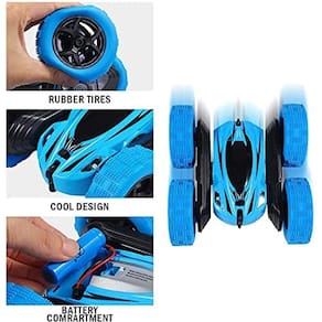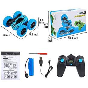 Brinquedo de carro de acrobacias com controle remoto Car-RC, carro recarregável giratório de 360° de dupla face, carro de corrida com controle remoto de 2,4 GHz de alta velocidade, veículo off-road 4WD, ótimo presente para crianças (azul)