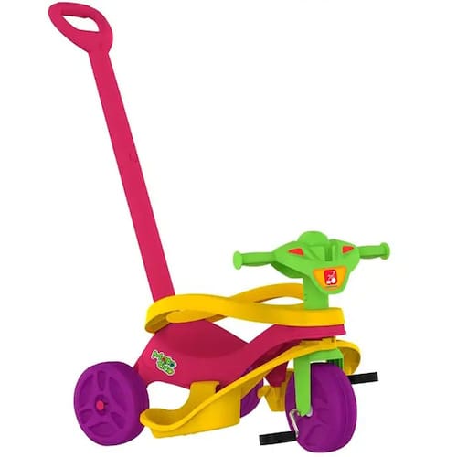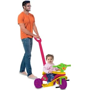 2 em 1 Escolha entre acompanhar o passeio, ou deixar seu filho andar livremente com o brinquedo. Se quiser assumir o controle, é só usar a haste, ou removê-la caso queira ver seu filho brincando com mais autonomia!