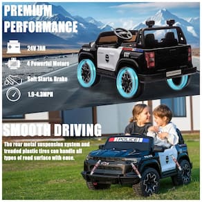 O carrinho elétrico infantil licenciado Chevrolet Colorado 24V da Nitoess é equipado com tração 4WD, bateria de 24V, motor potente e assentos duplos, suportando até 61 kg para duas crianças com conforto e segurança. Possui rodas de EVA de alta qualidade, proporcionando dirigibilidade estável em diversos terrenos como concreto, grama e cascalho.