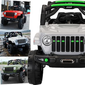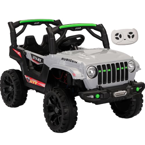 O carrinho vem com controle remoto, mas a própria criança também pode controlar o brinquedo. O Jeep Rubicon UTV-MX está completo com suspensão nas quatro rodas, portas que abrem de verdade, cinto de segurança e alça traseira para facilitar o transporte do produto. E dá pra curtir algumas músicas no rádio do Jeep Rubicon UTV-MX que vem com entrada USB e auxiliar! Quer mais? O Carro Elétrico Jeep Rubicon UTV-MX 12V da BangToys possui ainda uma super buzina, farois traseiro, dianteiro e auxiliares que acendem de verdade, LEDs, sons e luz no painel!