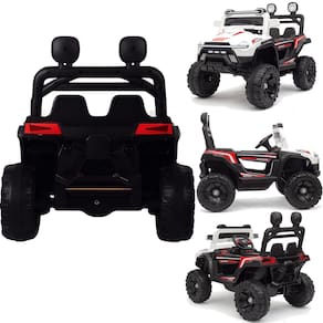 O Jipe Sparkle Safari 12V está disponível nas cores branca e rosa, com um visual marcante e cheio de estilo para agradar crianças de diferentes gostos.