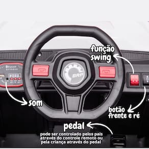 Itens inclusos: 1 Mini Carro, 1 Volante, 2 Assentos, 4 Rodas, 4 Calotas, 1 Controle Remoto, 1 Kit Montagem, 1 Carregador, 1 Manual (português)