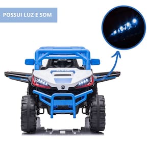 Deixe a criançada pegar a estrada com o Mini Quadriciclo Elétrico! As brincadeiras ficarão muito mais realistas, pois o mini carro possui luzes, som e função frente e ré. O mini veículo pode ser controlado pela criança por meio de acionamento de pedal e controle da direção, assim como, por um adulto utilizando o controle remoto. É ideal para crianças de 3 a 8 anos, com capacidade de até 50kg. Possui marcha para frente, ré e neutro. Simplesmente o melhor do passeio com a maior aventura. Altamente resistente e durável, peças de qualidade, selo Inmetro e Anatel, para assim, garantir conforto, e principalmente, segurança para os pequenos pilotos.