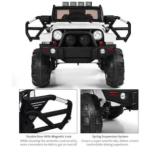Aparência legal e realista Apresentando luzes dianteiras e traseiras brilhantes e porta dupla com fechadura magnética, este passeio no caminhão está empenhado em proporcionar aos seus filhos a experiência de condução mais autêntica. A forma legal do caminhão vai, sem dúvida, torná lo uma existência real no brinquedo de buggy. O sistema de suspensão de mola garante um passeio super suave.