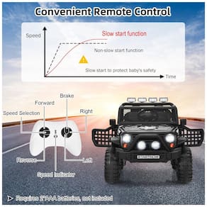 Condução automática e Controle remoto: Este veículo de 12V pode ser operado manualmente por crianças através do pedal e do volante ou através do controle remoto 1.5V Bateria AAA não incluída pelos pais a uma curta distância. Os pais podem substituir o controle remoto para dirigir o veículo quando a criança não pode alcançar o pedal do acelerador e não está pronta para dirigir de forma independente ao ar livre.
