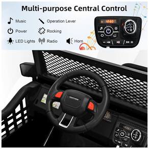 Experiência real de direção: As luzes LED realistas, portas duplas magnéticas com chave, funções para frente e para trás e a função de ajuste de velocidade em três níveis proporcionam ao seu filho uma experiência real de direção. A função de contar histórias e a reprodução de música conectando se ao MP3 player ou a outros dispositivos através da entrada AUX, porta USB e slot para cartão TF, trazem mais alegria para as crianças.