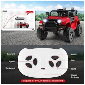 Operação manual e controle remoto 2.4G Este passeio no caminhão pode ser operado por crianças pressionando o botão para frente, parar, para trás, operando o volante e pisando no pedal. E o controle remoto 2.4G pode ser operado pelos pais com 3 velocidades ajustáveis para controlar o passeio no carro a uma distância segura de aproximadamente 30 metros ao dirigir ao ar livre para maior segurança. O controle remoto requer 2 pilhas AAA, não incluídas.