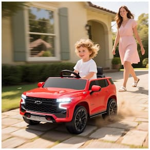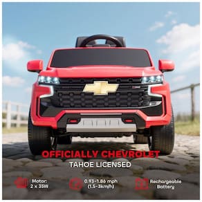 Marca: Aosom Modelo: Licensed Chevrolet Tahoe Cor: Vermelho Material: Metal e Polipropileno resistente Bateria: 12V 7AH recarregável Motores: 2 motores de 35W (motores duplos) Velocidades: 3 níveis ajustáveis (incluindo marchas para frente e ré) Suspensão: 4 rodas com sistema de suspensão para conforto Dimensões externas: 105 cm (comprimento) x 67 cm (largura) x 53 cm (altura) Diâmetro das rodas: 23 cm Peso do produto: 15,5 kg Capacidade máxima de peso: 25 kg Assento: Aproximadamente 35x20 cm com cinto de segurança Portas: Traváveis para maior segurança Recursos adicionais: Luzes LED, música integrada, conexão sem fio (bluetooth/USB), partida suave Controle remoto: Controle remoto para pais com função ligar/desligar, ajustes de velocidade e parada Indicado para crianças a partir de 3 anos Requer montagem por adulto Marca: Não Informado