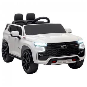 Marca: Aosom Modelo: Licensed Chevrolet Tahoe Cor: Branco Material: Metal e Polipropileno resistente Bateria: 12V 7AH recarregável Motores: 2 motores de 35W (motores duplos) Velocidades: 3 níveis ajustáveis (incluindo marchas para frente e ré) Suspensão: 4 rodas com sistema de suspensão para conforto Dimensões externas: 105 cm (comprimento) x 67 cm (largura) x 53 cm (altura) Diâmetro das rodas: 23 cm Peso do produto: 15,5 kg Capacidade máxima de peso: 25 kg Assento: Aproximadamente 35x20 cm com cinto de segurança Portas: Traváveis para maior segurança Recursos adicionais: Luzes LED, música integrada, conexão sem fio (bluetooth/USB), partida suave Controle remoto: Controle remoto para pais com função ligar/desligar, ajustes de velocidade e parada Indicado para crianças a partir de 3 anos Requer montagem por adulto Marca: Não Informado