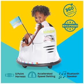 O pára choque elétrico é feito de plástico durável e não tóxico, com cintos de segurança ajustáveis de 5 pontos, pneus anti flat e uma borracha acolchoada na parte inferior para reduzir solavancos. O recurso de segurança de partida lenta garante que cada viagem seja suave e facilmente controlada. O carrinho está em conformidade com os regulamentos de segurança ASTMCPSIACPSCCA Prop 65FCC e vem com uma bandeira de corrida para maior visibilidade.