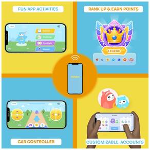 O Rideon é um carrinho bate bate com design exclusivo e controle habilitado para WiFi. Ele pode ser controlado através do APP Kidzone no iOS ou Android, permitindo que você controle a direção, velocidade, luzes e música. Além disso, o carrinho tem um modo de jogo, onde você pode ganhar estrelas para resgatar prêmios, melhorando a experiência interativa com as crianças.