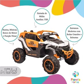 Carro Elétrico Infantil Buggy Adventure12V - Zippy Toys Proporcione uma experiência emocionante para seu pequeno com o Carro Elétrico Buggy Adventure da Zippy Toys Imagine seu pequeno pilotando um carro em alta velocidade, com o vento no rosto e o ronco do motor ao fundo Com o Buggy Adventure, o passeio se transformará em uma experiência emocionante, repleta de adrenalina e diversão Inspirado em um Buggy real, ele possui uma estrutura robusta e estável, com rodas grandes e design de alta performance. Perfeito para os pequenos que adoram explorar a natureza, ele oferece uma pilotagem suave e potente, capaz de enfrentar diferentes tipos de terrenos. Equipado com uma bateria recarregável de 12v, garante longas horas de diversão com apenas uma carga. Fácil de dirigir, ele conta com um pedal único que funciona como aceleração e frenagem, permitindo que as crianças dirijam de forma segura. Seus detalhes encantadores como: painel multifuncional, portas que abrem, faróis em LED e duas marchas frente e ré tornam a experiência ainda mais realista e divertida. E o melhor: o som da buzina e o ronco do motor completam a atmosfera de um verdadeiro motorista de Jipe O Buggy Adventure também vem com um sistema de som integrado, que inclui entrada para cabo auxiliar e USB. Assim, as crianças podem escolher suas músicas favoritas para acompanhar a aventura. E, para os momentos de descanso, os pais podem utilizar a função de ninar, criando uma experiência ainda mais completa e relaxante. Além de ser super divertido para as crianças, ele oferece duas maneiras de brincar: elas podem pilotar sozinhas, como um motorista de verdade, ou os pais podem controlar o veículo através do controle remoto. Uma experiência interativa e segura para todas as idades Pensado para oferecer segurança máxima, ele possui assento duplo superconfortável com cinco de segurança e o pedal proporciona aceleração gradual com frenagem suave, garantindo uma condução segura e controlada para os pequenos. Mais do que uma simples forma de entretenimento, ele desempenha um papel importante no desenvolvimento das habilidades motoras e da coordenação das crianças. Ao conduzir o Buggy, elas praticam a destreza e a concentração, promovendo o aprendizado de forma lúdica e ativa ao ar livre. Cada volta e cada aceleração ajudam a desenvolver a confiança e a independência. Com o Buggy Adventure da Zippy Toys a diversão é garantida em todos os momentos Principais Características: - Idade Recomendada: A Partir de 3 anos - Peso Máximo Suportado: 50kgs - Possui 2 Marchas Frente e Ré - Botão Liga e Desliga - Possui Painel Multifuncional com Entrada Auxiliar e USB - Alto Desempenho e Durabilidade - Pedal Único de Aceleração / Frenagem - Aceleração Gradual e Frenagem Suave - Faróis em LEDs Brilhantes que Acendem - Bateria Recarregável de 12v - Com Ronco do Motor, Música e Função Ninar - Motor Super Potente - Estrutura e Rodas Robustas - Possui Assento Duplo Confortável - Cinto de Segurança - Portas que Abrem de Verdade - Acompanha Controle Remoto - Disponível nas Cores: Amarelo e Rosa Especificações Técnicas: - Conteúdo da Embalagem: 1 Carro Elétrico Infantil Buggy Adventure 12v - Zippy Toys - Dimensões do Produto AxLxP : 62,0 x 72,0 x 115,0 cm - Composição/Material: Plástico e Aço Carbono - Alimentação: Bateria Recarregável 12V - Peso: 16,200 kgs - : 90 dias Contra Defeitos de Fabricação Pelo Fabricante - Certificação: 004499/2023 - Código do Fabricante: 11076 / 11077 - EAN: 7908216138643 / 7908216138650 - Marca: Zippy Toys Imagens Meramente Ilustrativas. As cores e estampas podem variar de acordo com o lote do fabricante. Homologação Inmetro: IP-BRI-0010/2022-76