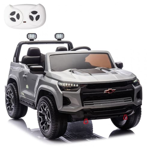 Marca: Nitoess Modelo: Chevrolet Colorado Licenciado 24V 2 Seater Potência: Motor 24V 4WD Bateria: 24V recarregável Idade recomendada: 3 a 8 anos Velocidade máxima: Aproximadamente 8 km/h (5 mph) Peso máximo suportado: 61 kg (135 lbs) Assentos: 2 lugares com cintos de segurança Rodas: EVA para melhor tração Controle remoto: Parental 2.4GHz com função override Iluminação: Luzes LED dianteiras e traseiras Áudio: Conexão Bluetooth, música integrada, buzina, alarmes, megafone Dimensões: 125 x 79 x 66 cm (L x W x H) Peso do produto: 15 kg Material: Polipropileno Cor: Cinza