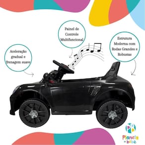 Carro Elétrico Infantil Compact Preto - Zippy Toys Proporcione uma experiência emocionante para o seu pequeno com o Carro Elétrico Compact da Zippy Toys Imagine a sensação de pilotar um carro em alta velocidade, com o vento no rosto Com essa super máquina, você vai marcar a infância do seu filho com momentos únicos, cheios de adrenalina e diversão de verdade. Com muito estilo, segurança e interatividade, ele tem um visual moderno inspirado nos modelos de luxo, perfeito para conquistar o coração dos pequenos. Oferece uma experiência completa de direção com duas maneiras de brincar: a criança pode pilotar sozinha como um verdadeiro motorista ou o adulto pode assumir o controle através do controle remoto. O carro conta com botão liga/desliga, botões de frente e ré, e volante com buzina e músicas diferentes, estimulando os sentidos e tornando a brincadeira ainda mais divertida. Os faróis acendem de verdade, tornando a experiência ainda mais realista. Além disso, ele ainda possui um painel de controle com botões de: controle de volume, seleção de músicas e buzina Pensado com foco total na segurança, o Mini Compact é equipado com retrovisores, cinto de segurança subabdominal e assento super confortável. O pedal possui aceleração gradual e frenagem suave, garantindo conforto e proteção durante o uso. Mais do que um brinquedo, este carrinho contribui para o desenvolvimento das habilidades motoras e da coordenação das crianças. Ao conduzir o carro, elas praticam noção de espaço e tomada de decisão, tudo isso de forma lúdica e ao ar livre. Cada volta e cada aceleração ajudam a construir confiança e independência. Disponível nas cores: Vermelho, Preto, Branco e Rosa, o Mini Compact da Zippy Toys garante diversão de verdade para todas as aventuras da infância Principais Características: - Idade recomendada: a partir de 3 anos - Peso máximo suportado: 30 kg - Volante com Buzina e músicas diferentes - Painel de controle com Botões de Volume - Botão de seleção de músicas - Botão com 2 marchas frente e ré - Modo manual e modo controle remoto - Botão liga/desliga - Alto desempenho e durabilidade - Pedal de aceleração manual - Aceleração gradual e frenagem suave - Faróis que acendem - Bateria recarregável de 6V - Cinto de segurança subabdominal - Estrutura e rodas robustas - Assento confortável com encosto - Retrovisores funcionais - Acompanha controle remoto - Disponível nas cores: Vermelho, Preto, Branco e Rosa Especificações Técnicas: - Conteúdo da Embalagem: 1 Carro Elétrico Infantil Mini Compact PT - Zippy Toys + Manual de Instruções. - Dimensões do Produto AxLxP : 43,0 x 47,0 x 90,0cm - Alimentação: Bateria Recarregável 6v - Peso do Produto: 7,000kgs - : 90 dias Contra Defeitos de Fabricação Pelo Fabricante - Certificação: 004499/2023 - Código do Fabricante: 11511 - EAN: 7908216139497 - Marca: Zippy Toys Imagens Meramente Ilustrativas. As cores e estampas podem variar de acordo com o lote do fabricante. Homologação Inmetro: IP-BRI-0010/2022-76