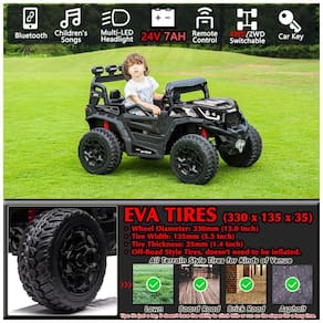 Entretenimento Adicional: O UTV infantil conta com um painel de música multifuncional, que inclui conexão USB, Bluetooth e funções integradas de música. Isso permite que você conecte dispositivos para tocar as músicas ou histórias favoritas das crianças, tornando a experiência de condução ainda mais divertida.