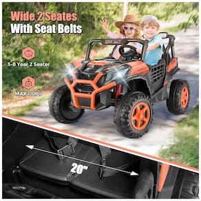 Para garantir a segurança das crianças, o carrinho vem com cinto de segurança ajustável, portas de malha com trava dupla, absorção de choque e um sistema de partida e parada suave. Feito de plástico PP durável e certificado pela ASTM e CPSIA, o Carro Elétrico Infantil Off Road é um presente ideal e um companheiro divertido para os pequenos.