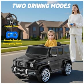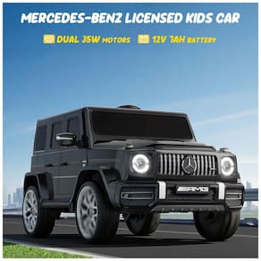 O carro elétrico infantil licenciado Mercedes-Benz G63 garante experiência premium, autenticidade e segurança para crianças de 3 a 5 anos. Equipado com bateria de 12V 7Ah, dois motores de 35W, velocidade máxima de 5 km/h, partida suave, portas com janelas altas e trava, sistema de amortecedores traseiros e cintos de segurança.