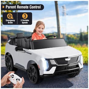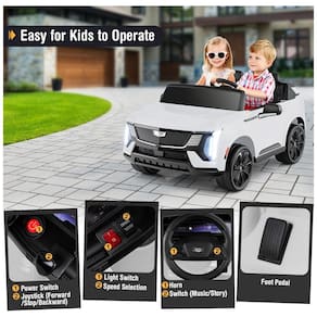 O Carro Elétrico Infantil Costzon Licensed Cadillac é ideal para duas crianças que desejam uma aventura divertida e segura. Com design licenciado Cadillac, possui detalhes realistas, faróis LED funcionais, música integrada e controles intuitivos para crianças e pais. Equipado com bateria recarregável 24V e dois motores de 65W, proporciona uma velocidade ajustável entre 3 e 6 km/h e autonomia de até 120 minutos.