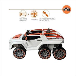 Especificações Técnicas: - Recomendado Para crianças à partir: de 3 anos ou com peso máximo de até 30 kg Idade recomendada pode variar dependendo do tamanho da criança, verifique sempre as medidas do produto e o peso máximo permitido - Direção 2 em 1: pode ser controlado tanto a distância pelo controle remoto, como manualmente pela criança de dentro do veículo. - Recomendado somente: 1 criança por vez. - Bateria recarregável: 1 Bateria de 12V - Tempo de carregamento: de 8 a 12 horas - Duração da bateria: de 40 min à 1 hora - Velocidade máxima: 3 a 5km/h - Acompanha carregador: bivolt - Acompanha controle remoto: Sim Pilhas Não Incluídas - Cinto de segurança: de dois pontos com regulador - Medidas do produto Aproximadas : 140cm comp. 75cm larg. 67cm alt. - Material do Assento: Plástico resistente - Material das Rodas: Plástico resistente - Fabricante: Bangtoys - Possui alça traseira para transporte - Possui Banco de encaixe - Possui 4 Motores - Possui Farol que liga/ pisca/ desliga - Local de carregamento soquete : Abaixo do banco, lado direito