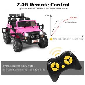 Carro Elétrico Infantil Off Road a Bateria 12V com Luz LED, Músicas, Suspensão de Mola, 3 Velocidades, HONEY JOY, Rosa