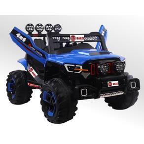 No painel de controle, alterna entre frente e ré; tem botão para ligar e desligar o Jipe; luzes de LED no farol dianteiro e na traseira; aceleração no pedal; emite sons como músicas, buzina e barulho de motor. Ambas as portas abrem, proporcionando à criança ainda mais conforto e diversão e possui assento anatômico com cinto de segurança, para tranquilidade dos pais. Para deixar o Jipe mais real, possui para-brisa, para-choque e faróis decorativos em cima e na frente (apenas decorativos).