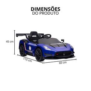 Potência e Durabilidade: - Movido por bateria recarregável de 12V, o Maserati R/C acompanha um carregador automático 127/220V para recarregar facilmente em qualquer lugar.