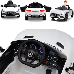 O carrinho vem com controle remoto, mas a própria criança também pode controlar o brinquedo. O Mercedes-Benz GLC AMG GT Coupe está completo com suspensão nas quatro rodas, portas que abrem de verdade e cinto de segurança. E dá pra curtir algumas músicas no rádio do Mercedes-Benz GLC AMG GT Coupe que vem com entrada USB, Bluetooth e auxiliar! Quer mais? O Carro Elétrico Mercedes-Benz GLC AMG GT Coupe 12V da Shiny Toys possui ainda uma super buzina, farois traseiro, dianteiro e auxiliares que acendem de verdade, sons e luz no painel!