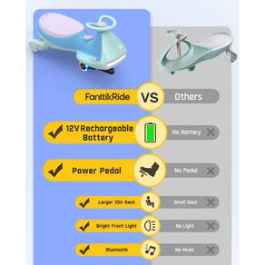 FanttikRide Carro elétrico 12V N7 Pro com pedal, bateria recarregável, carro giratório 2 em 1, brinquedo de 2 velocidades, antircapotamento, rodas piscando, Bluetooth, para crianças a partir de 3 anos, 68 kg, azul gelo - Controle de 360° e carro giratório 2 em 1: o carro giratório elétrico se beneficia de um volante com rolamentos suaves integrados e rodas giratórias capazes de direção de 360°, permitindo que você se divirta em ambientes internos e externos. Modo elétrico: ligue o interruptor de energia e pressione o pedal, ou modo manual: basta girar o volante ou deslizar com os pés para levá-lo a uma experiência de pilotagem agradável - 2 velocidades e anti-capotamento: bateria de 12 V e motor potente de 45 W, máx. 7 km/h, sinta a velocidade e a paixão trazidas pelo carro giratório. Você pode ser ajustado para um modo de baixa velocidade de 3 km/h através do botão plug-in na parte inferior do carro. Chassi triangular duplo anti-ponta estilo pirâmide, rodas traseiras antiponta atualizadas e seu sistema de choque de mola, evitando efetivamente a inclinação lateral - Rodas piscantes e música Bluetooth: quando você desliza no carro com pedais, a luz frontal o guia para frente e as rodas magnéticas piscam com luzes coloridas. Rodas de poliuretano iluminadas sem necessidade de pilhas, fornecem boa absorção de choque, deslizam suavemente e não arranham o chão. Conecte ao Bluetooth para ajustar livremente o volume e as músicas, adicionando diversão à experiência de condução do seu filho - Adequado para crianças: o carro elétrico estimula a imaginação e a capacidade prática da criança, e também cultiva a coordenação motora e o senso de equilíbrio das crianças. O assento extragrande ergonomicamente projetado pode acomodar duas crianças. Este brinquedo é adequado para alturas de até 175 cm, capacidade de peso de até 68 kg, para que até os adultos possam experimentar a diversão dos pequenos - Fácil de instalar e escolha perfeita: apenas 2 etapas, você pode concluir rapidamente a instalação do carrinho motorizado. Este brinquedo inovador é perfeito para meninos e meninas a partir de 3 anos, tornando-o uma escolha perfeita para aniversários, feriados ou qualquer ocasião especial