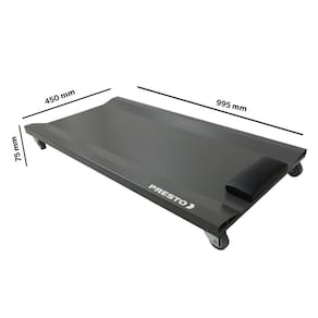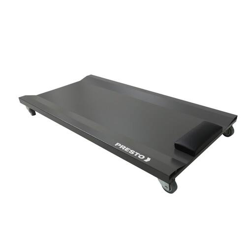 Carro Esteira PRESTO, projetado para facilitar seu trabalho em manutenções automotivas. Fabricado em chapa de aço de baixo teor de carbono, c/ tratamento químico fosfatizante e antiferruginoso e pintura eletrostática a pó, o que garante uma proteção eficaz contra corrosão e um acabamento de alta qualidade. Carga máxima de até 100 kg distribuídos.