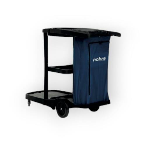 Carro funcional preto alta capacidade c/tampa e bolsa de vinil azul - Nobre Carro funcional de limpeza, para transporte de materiais e acessórios, Ajudando na otimização das tarefas de limpeza. Rodas para melhor locomoção; Com bolsa de vinil de 90L; Para transporte de materiais de limpeza; Utilizado em hospitais, indústrias e comércios; Marca: Não Informado