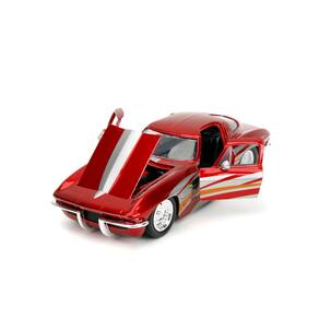 Carro fundido sob pressão Jada Big Time Muscle 1:24 1963 Chevy Corvette Stingray, brinquedos para crianças e adultos (vermelho/prata)