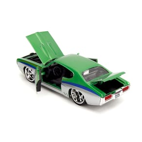 Carro fundido sob pressão Jada Toys Bigtime Muscle 1:24 1969 Pontiac GTO — Abrindo portas, capô, porta-malas e pneus de borracha (prateado/verde) — Fabricado com materiais duráveis, como metal 100% fundido sob pressão e pneus de borracha premium — Nosso método de fundição de alta qualidade permite detalhes ricos em características, como abertura do capô, portas, interior detalhado e porta-malas — A escala é 1:24 — Colecione todos eles — Adequado para maiores de 8 anos