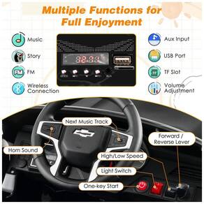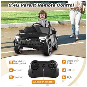 O carro infantil elétrico Costzon Chevrolet Tahoe 12V é licenciado e projetado para crianças, atendendo aos mais altos padrões de segurança ASTM e CPSIA. Oferece funcionamento por pedal ou direção remota (2.4G), sendo ideal para crianças pequenas e pais que buscam supervisão junto ao entretenimento. Possui dois modos de velocidade (alta/baixa) e direção reversa, além de botão de partida único e acelerador realista para experiência de condução interativa. O carro é equipado com suspensão por molas nas quatro rodas, garantindo conforto e absorção de impactos em variados pisos (asfalto, ladrilho, grama), e rodas de polipropileno resistentes a desgaste.