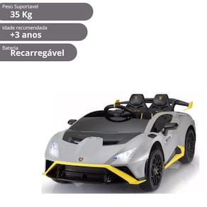 Diferenciais: - Design Autêntico: Réplica detalhada do Lamborghini Huracan, encantando os pequenos fãs de carros. - Segurança e Controle: Pode ser controlado pelos pais via controle remoto, assegurando a supervisão durante a brincadeira. - Bateria Potente: Com 24V, garante mais velocidade e desempenho que modelos comuns de 12V.