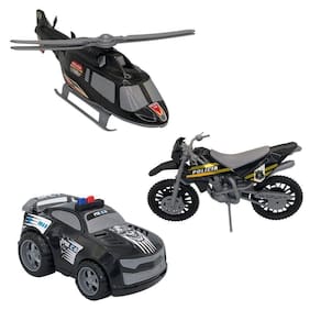 01 KIT DE BRINQUEDO DE POLÍCIA COM CARRO, MOTO E HELICÓPTERO - PRETO