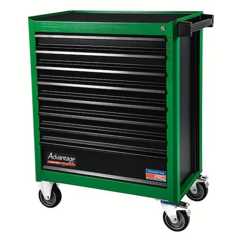 Estrutura com paredes reforçadas.Oito gavetas com corrediças telescópicas.Sete gavetas com 75 mm de altura e uma com 155 mm.Trancas para gavetas.Rodas dianteiras fixas e traseiras giratórias, de borracha com 125 mm de diâmetro.Rodas traseiras providas de freio individual.Cap. de carga máxima por gaveta com altura de 75 mm: 20 Kg / com altura de 155 mm: 30 kg.Cap. estática: 400 Kg, Cap. dinâmica: 300-350 Kg.Espessuras das chapas: corpo e gavetas: 1,2 mm.As maletas, carros e bancadas são testados em ensaios de carga, para garantir sua resistência durante a utilização na oficina ou indústria.A pintura eletrostática forma uma película protetiva que garante um acabamento excelente e resistência à corrosão.As gavetas que estão na linha de carros e bancadas, possuem corrediça tipo telescópica. As corrediças telescópicas garantem deslizamento suave e maior abertura para as gavetas, quando comparadas com corrediças tradicionais.Armazenamento e transporte de ferramentas manuais, peças e acessórios.Puxador ergonômico e lâmina de borracha para tampo superior.As ferramentas são produzidas e testadas conforme normas específicas.