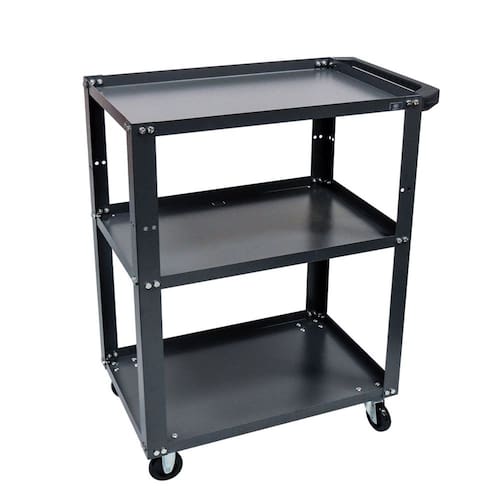 Carro p/ Ferramentas Aberto PRESTO de 3 Bandejas, feito em chapa de aço com baixo teor de carbono, com tratamento químico fosfatizante e antiferruginoso e pintura eletrostática a pó, o que garante uma proteção eficaz contra corrosão e um acabamento de alta qualidade.