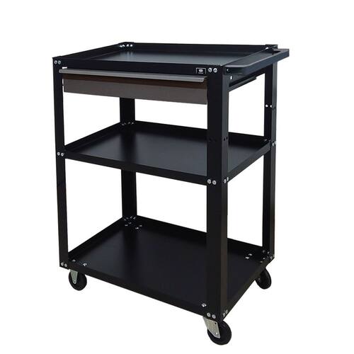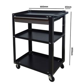 Carro p/ Ferramentas de 1 Gaveta e 3 Bandejas Dark PRESTO, feito em chapa de aço com baixo teor de carbono, com tratamento químico fosfatizante e antiferruginoso e pintura eletrostática a pó, o que garante uma proteção eficaz contra corrosão e um acabamento de alta qualidade.