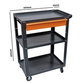Carro p/ Ferramentas de 1 Gaveta e 3 Bandejas PRESTO, feito em chapa de aço com baixo teor de carbono, com tratamento químico fosfatizante e antiferruginoso e pintura eletrostática a pó, o que garante uma proteção eficaz contra corrosão e um acabamento de alta qualidade.