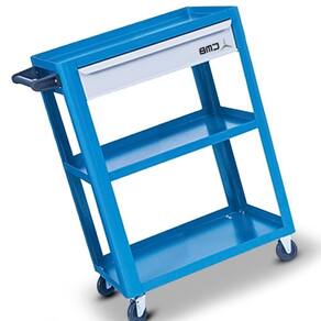 Carrinho de Ferramenta com 3 Bandejas e 1 Gaveta é fabricado em chapas de aço carbono resistentes, recebe tratamento de superfície anticorrosivo e finalmente recebe um acabamento de tinta eletrostática a pó.