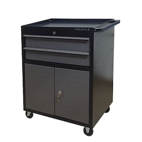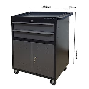Carro Profissional p/Ferramentas Dark PRESTO c/2 Gavetas e Portas, fabricado em chapa de aço c/ baixo teor de carbono, c/ tratamento químico fosfatizante e antiferruginoso e pintura eletrostática a pó, o que garante uma proteção eficaz contra corrosão e um acabamento de alta qualidade.