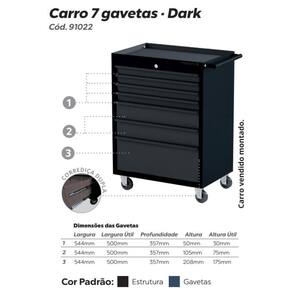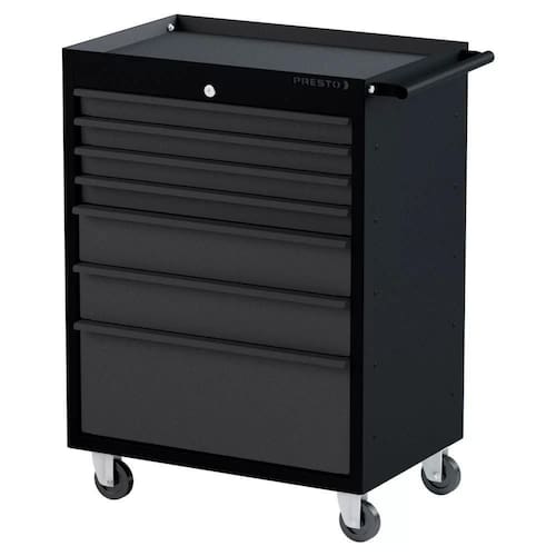 O Carro para Ferramentas da Presto com 7 gavetas é robusto e funcional. Tem capacidade de carga de até 250kg distribuídos e permite o acondicionamento e , já que conta com 4 rodízios de 4, sendo 2 fixos e 2 giratórios com freio.