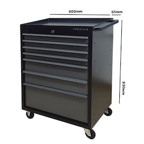 Carrinho Profissional p/ Ferramentas Dark PRESTO c/ 7 Gavetas, produzido em chapa de aço c/ baixo teor de carbono, c/ tratamento químico fosfatizante e antiferruginoso e pintura eletrostática a pó, o que garante uma proteção eficaz contra corrosão e um acabamento de alta qualidade.