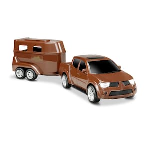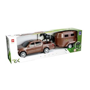 A Pick-up RX Haras, da roma, vai deixar a brincadeira mais divertida. Com rodas e calotas metalizadas, vem com uma carreta com porta móvel e um cavalinho.