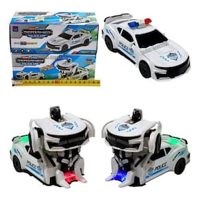 2 EM 1. É um robô ou é um carro de polícia? Bem, na verdade são os dois. Para se divertir ainda mais, este carro de polícia se transforma em um robô na parte frontal - bem diante de seus olhos - para proporcionar o dobro de diversão aos mais pequenos.